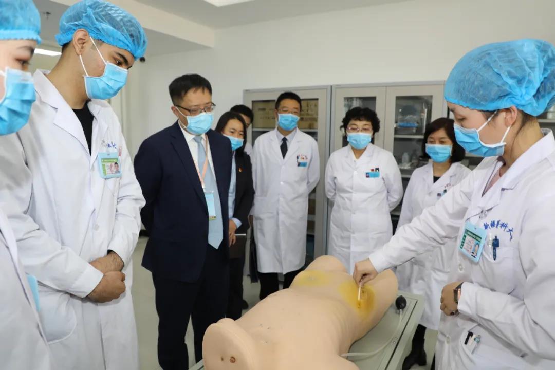 当天下午,专家组实地走访了第五临床医学院规培楼内6个示教室、模拟手术室、模拟产房、模拟抢救室以及8个示训室,分别与临床教师、学生交流座谈,并前往了社区卫生服务中心实地考察并听取汇报,对第五临床医学院专业办学基本条件、人才培养质量等进行全面考察和检验。