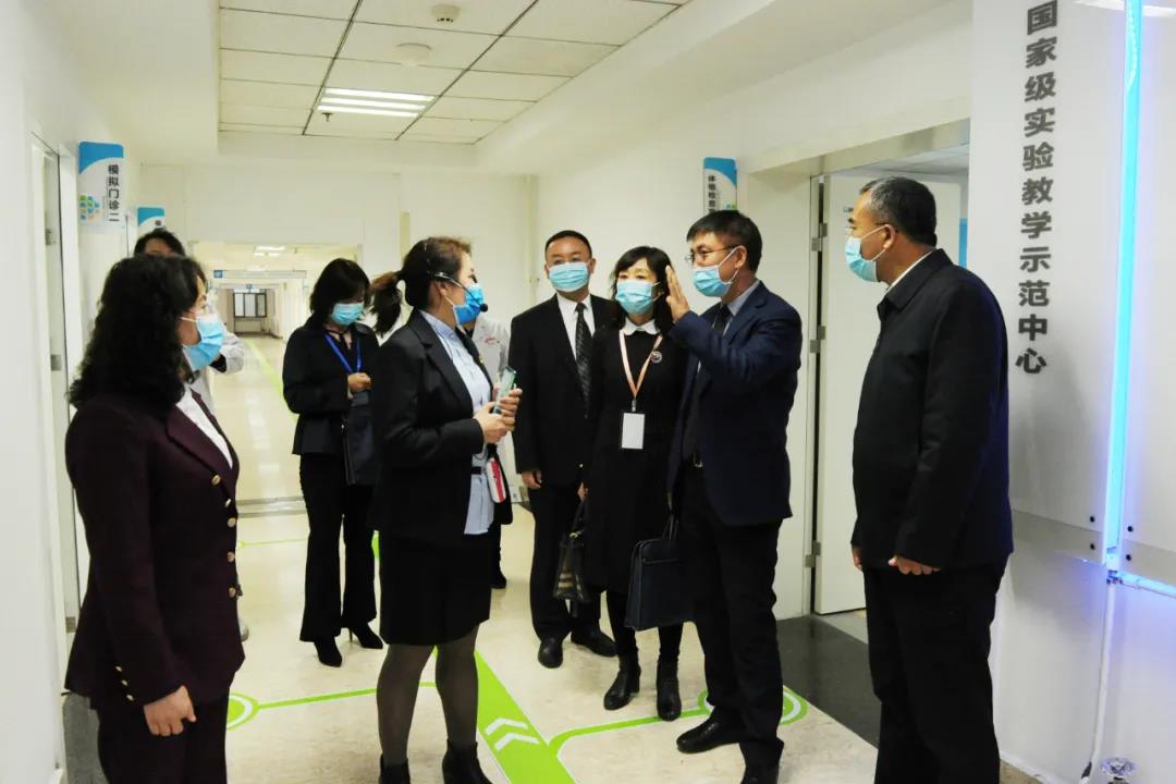 随后,专家组一行现场考察了远程医学中心、临床技能培训中心模拟培训部、外科手术学实验室,分组走访了内科学、外科学、妇产科学、儿科学等教研室,观摩了教学查房。现场考察期间,专家组通过听取汇报、现场走访、召开座谈会、查阅教研室档案资料、听课等形式,全面细致地了解第一临床医学院的办学基本情况、教育教学理念、培养目标定位、人才培养模式、人才培养质量、学科队伍建设、师资队伍建设等情况。