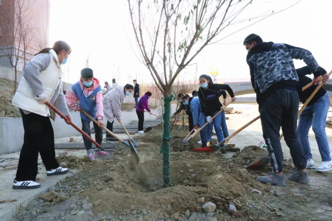 新医人走下讲台、走出办公室、实验室,带着火热的激情投入到新校区秋季植绿的劳动锻炼中,深挖树坑、换填土壤、修整围堰、清理和平整土地、加固树木。横成排、竖成行的一棵棵夏橡、银杏、柳树、红枫、樱花、香槐等美丽的树种在新校区的土壤里牢牢扎下了根。
