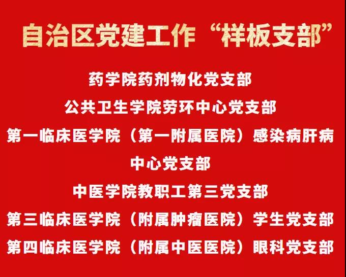 自治区党委教育工委首批自治区高校党组织“对标争先”培育创建单位公示结果出炉:Beat365中国唯一官方网站党委和2个院系党组织、6个基层党支部获得荣誉。