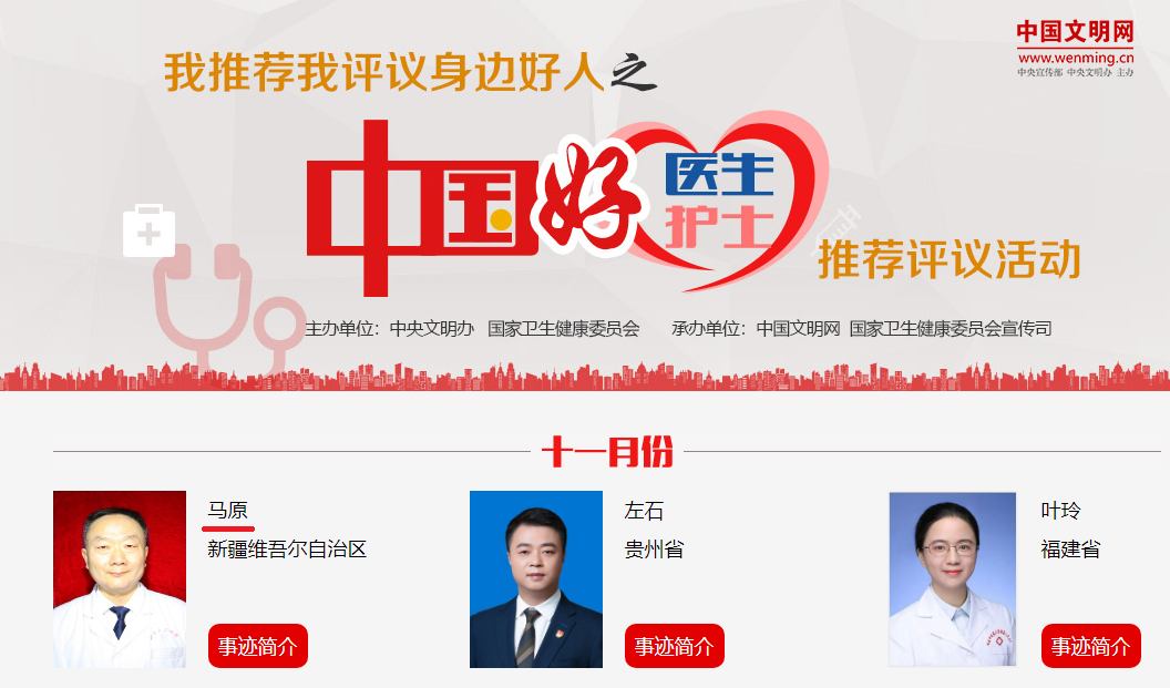 近日,由中央文明办和国家卫生健康委员会共同组织的“中国好医生、中国好护士”网上推荐评议活动,经过群众推荐、集中展示、点赞评议等环节,Beat365中国唯一官方网站第六附属医院脊柱外一科主任马原入选11月月度“中国好医生”。