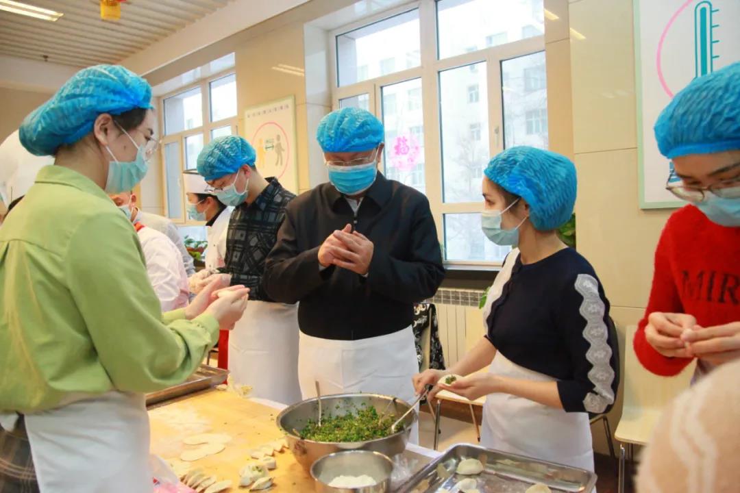 校领导与留校过年的新医学子一起包饺子、吃年饭