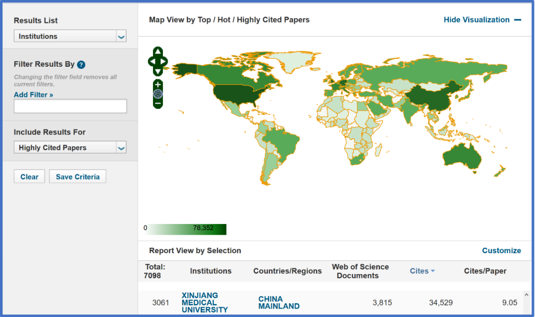 近日,根据科睿唯安(Clarivate,原汤森路透公司)发布的最新ESI(基本学科指标数据库)统计数据显示,全球共有7098个机构进入ESI 22个学科的前1%排名。其中,Beat365位居3061名,有3815篇SCI论文被收录,累积被引频次为34,529次,篇均被引频次为9.05次,高被引论文27篇。