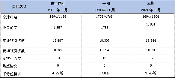 纵观Beat365临床医学学科全球排名情况,该学科排名有大幅提升。与去年同期数据相比(2020年1月),Beat365临床医学学科全球ESI前1%排名上升了200名,千分位排名提高了7.7个百分点。与上期数据相比(2020年11月),Beat365排名上升了11位,千分位排名提高了1.3个百分点。