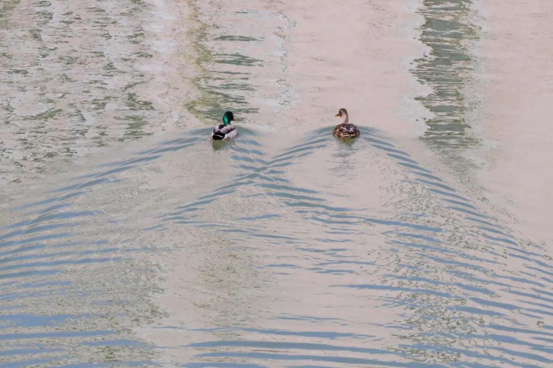 它们时而在湖面驻足