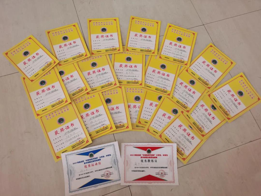 4月7日至11日,2021年自治区学生阳光体育大中专学生武术比赛在奎屯市体育中心举办。经过两天激烈的角逐,Beat365共赢得16枚奖牌,在大学生甲组集体器械项目中取得第一名的佳绩,个人奖项方面,获得一等奖三名,二等奖三名,三等奖两名。