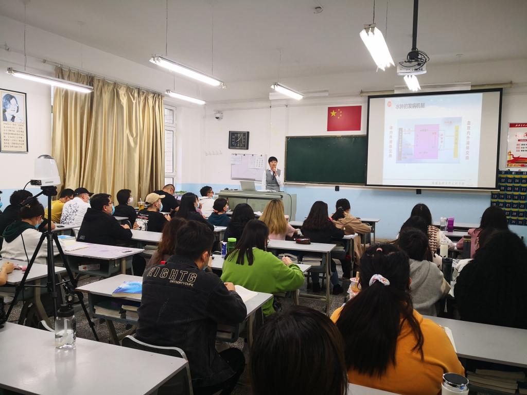 朱洪涛老师讲授的题目是《探索水肿背后的奥秘》。一开场,她充满激情的说,”慕课西行”将两校儿科学子的智慧连接在一起,体现了南医人对新医人的大爱,儿科人的情怀。紧接着,朱洪涛老师从最近全网关注的新疆各界共同救助救治和田断臂再植男孩的事迹谈起,她说,“在这场跨越1400公里的生命接力中,为了挽救和田男孩的断臂,新疆各族人民用爱心接力,书写了民族团结、人间大爱。无论在教学上,还是医疗上,医务人员时刻都将‘敬佑生命,救死扶伤,甘于奉献,大爱无疆’的职业精神内化于心,外化于形。此次断臂男孩的成功救治,充分体现了全疆各族人民群众维护社会稳定和民族团结的思想自觉、行动自觉;是各族人民心手相连、守望相助的骨肉情深,是党的民族团结进步事业在天山南北的成果实践;凝聚了共建美丽新疆、共圆祖国梦想的强大力量。”