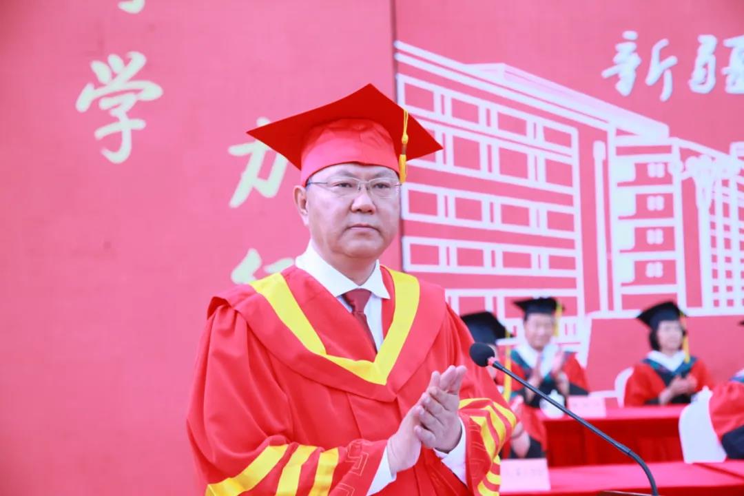 在浓浓的师生情中,校党委书记高发水向即将告别母校,奔赴美好前程的3668名毕业生表示了热烈的祝贺。他说,春夏秋冬,曾经的你们,初心致远、使命敦行。怀揣着医学梦想来到新医,从此无悔地踏上了医学之路;向阳而生,今天的你们,璞玉初成、新蕾勃发。在新医的日子,有汗水、有泪水,更有成长与磨练;道阻且长,未来的你们,“天高任鸟飞,海阔凭鱼跃”。结束在新医的大学生活,对于你们来说,只是一段人生新航程的开始。带着新医的成长印记和优良传统,你们将奔赴更加广阔的天地。希望你们在开拓进取中坚守初心梦想,在追求卓越中发扬新医精神,以卓越的姿态向自己的人生目标砥砺前行。