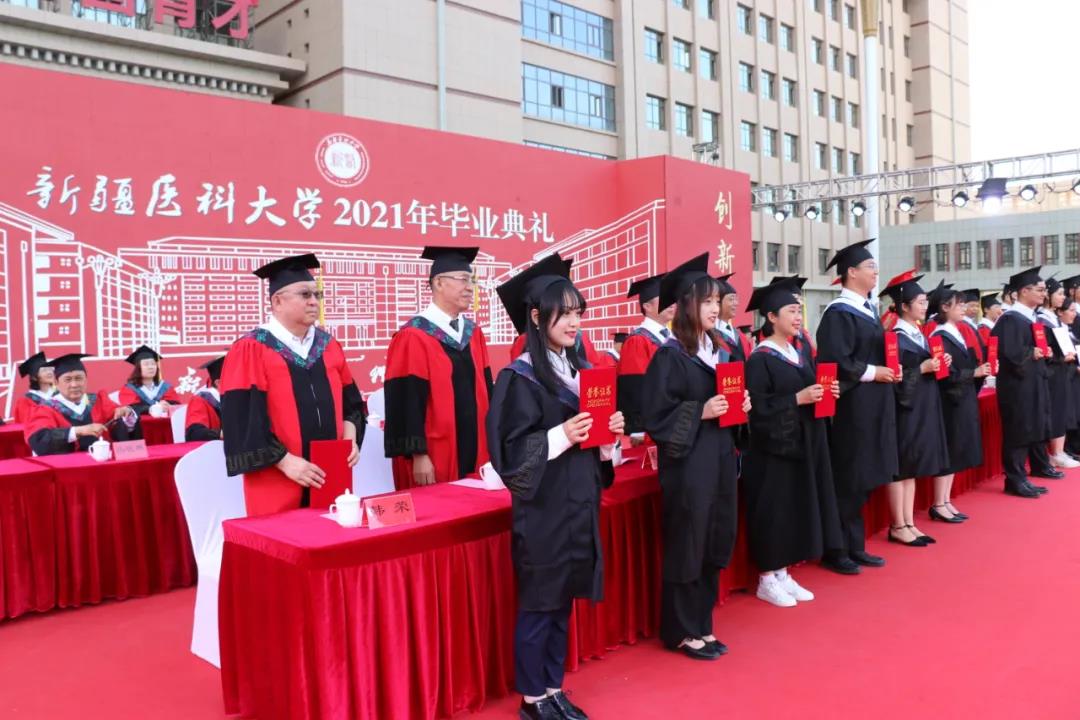 毕业生代表,中医学院针灸推拿学本科生党欢、第二临床医学院研究生赛米热·沙塔尔深情讲述了在学校学习、生活的难忘时光,感动于前辈师长们用言传身教传递的“人民至上、生命至上”的价值追求,表示将学着新医前辈的样子,带着母校的祝福与期待,矢志不渝,让青春在建功新时代的奋斗中绽放最绚丽的光彩。