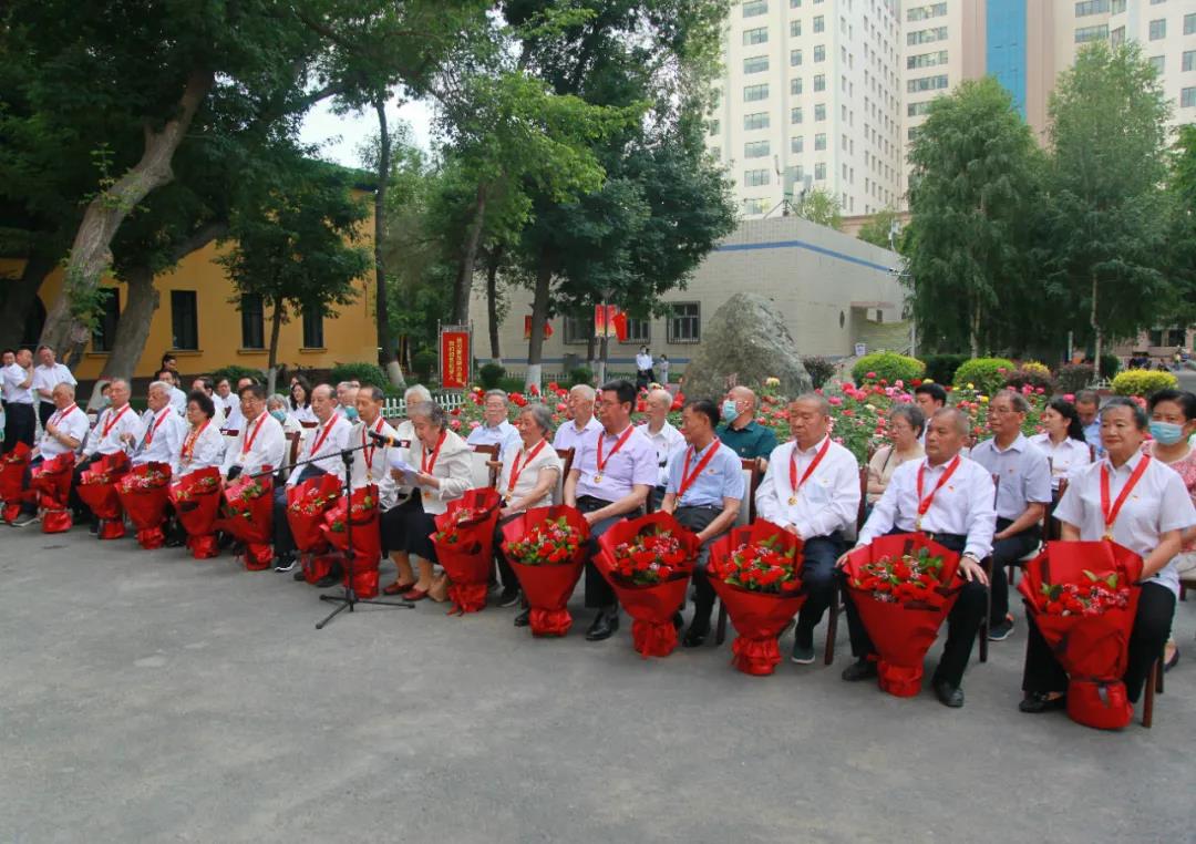 “光荣在党50年”老党员代表,第一附属医院原党委副书记米娜娃尔·卡斯木,原公卫系主任、党总支书记徐臻荣在发言中深情讲述了“光荣在党50年”的体会和感悟,用朴实的语言表达了老党员们对党的忠诚与热爱,抒发了坚守初心、笃定志向,不改本色、忘我工作的炙热情怀。