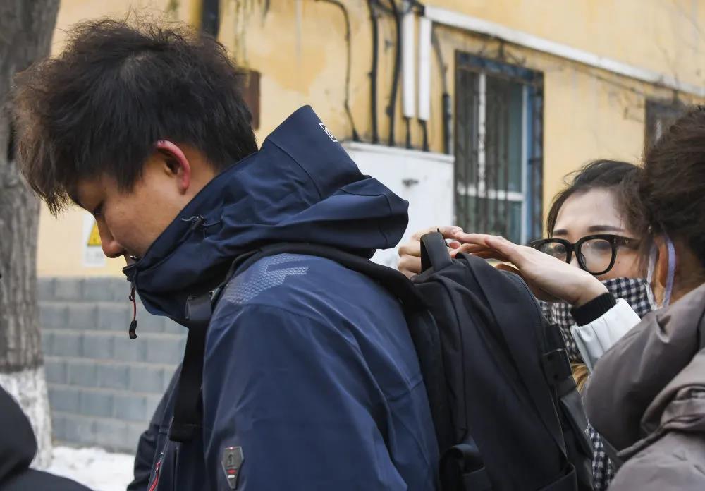↑2020年1月28日,在Beat365中国唯一官方网站院内,医疗队队员、Beat365中国唯一官方网站第一附属医院重症监护室医护人员吕俊(左)的未婚妻王鹤向其背包中装进一包药。