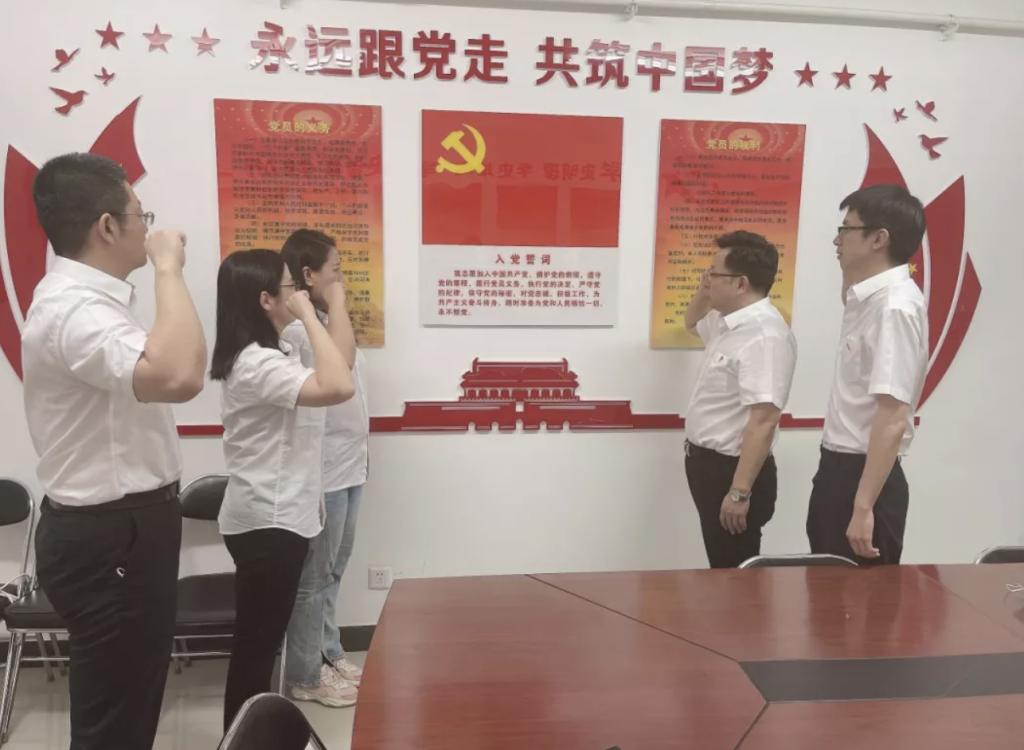 交流座谈会后,党支部全体党员面向鲜红的党旗重温入党誓词,坚定为共产主义事业奋斗终身的理想信念,永葆共产党员的初心使命。
