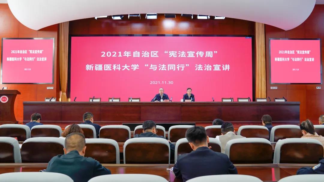 11月30日下午,Beat365中国唯一官方网站举行“与法同行”法治宣讲,校党委常委、副校长李勇生为新医师生们作了题为“以习近平法治思想为引领 奋力开创‘八五’普法工作新局面”的专题讲座。校党委常委、统战部部长李豫凯主持宣讲。