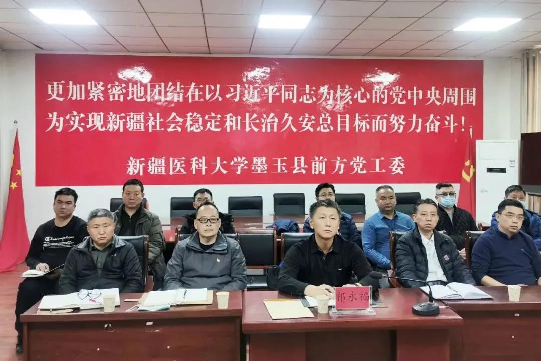 高发水指出,要把学习宣传贯彻党的十九届六中全会精神作为当前和今后一个时期的重大政治任务,认真学习领会,抓好贯彻落实。全校各基层党委(总支)和广大党员干部要进一步提高政治站位、强化政治自觉,深刻认识“两个确立”的决定性意义,切实增强“四个意识”、坚定“四个自信”、做到“两个维护”,在思想上政治上行动上同以习近平同志为核心的党中央保持高度一致。要按照党中央部署和自治区党委安排,强化组织领导,认真推进学习;把牢正确方向,精心策划宣传;营造良好氛围,广泛开展宣讲;开展理论研究阐释工作,深入交流研讨。要吃透精神实质、把握核心要义,在全校上下营造学习贯彻浓厚氛围,掀起学习贯彻热潮,努力把学习成效转化为推动学校高质量内涵式发展的强大动力,为实现社会稳定和长治久安总目标、建设新时代中国特色社会主义新疆贡献新医力量!