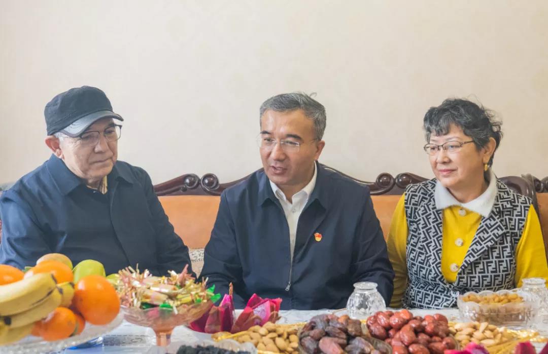 校党委副书记、校长凯赛尔•阿不都克热木分别走访了原新疆医学院副院长帕尔哈提·阿不都热依木教授,原药学院专家陈坚教授和离退休老干部阿米娜·苏莱曼,为他们送去鲜花和节日的祝福。