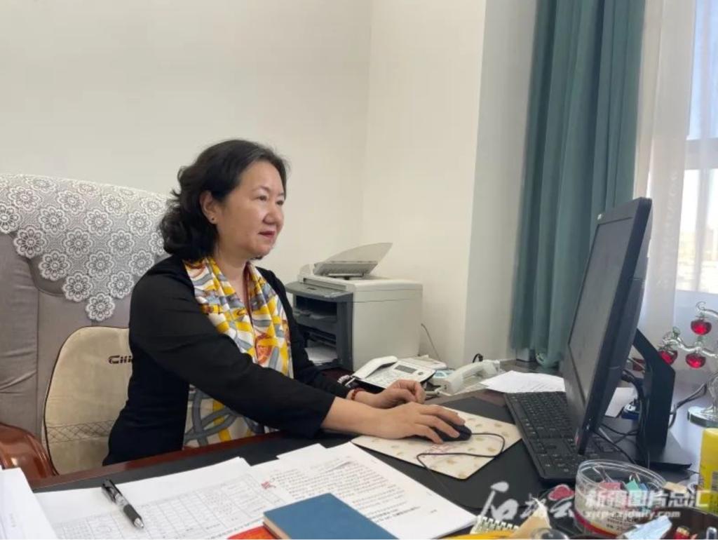 安冬青在电脑前工作。石榴云/新疆日报记者 任华摄