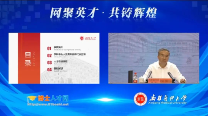 云直播中,校党委副书记、校长凯赛尔·阿不都克热木向海内外青年才俊介绍了学校的基本情况,在教育教学、科研创新、医疗服务、师资队伍等方面的显著优势和突出成绩,以及学校的人才政策、事业平台、科研平台、薪资待遇等广大高层次人才关心的内容。