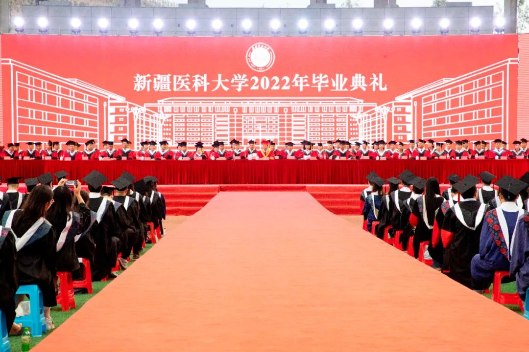 全国创新大赛新疆赛区一等奖获得者、教学名师、中医学院刘俊昌教授,2022届优秀博士毕业生指导老师、博士生导师、第一临床医学院(第一附属医院)谢翔教授作为教师代表,向鲲鹏展翅的新医毕业生们表达祝贺,希望同学们立大志、明大德、成大才、担大任,努力成为堪当民族复兴重任的时代新人,让青春在为祖国、为人民的不懈奋斗中绽放绚丽之花。
