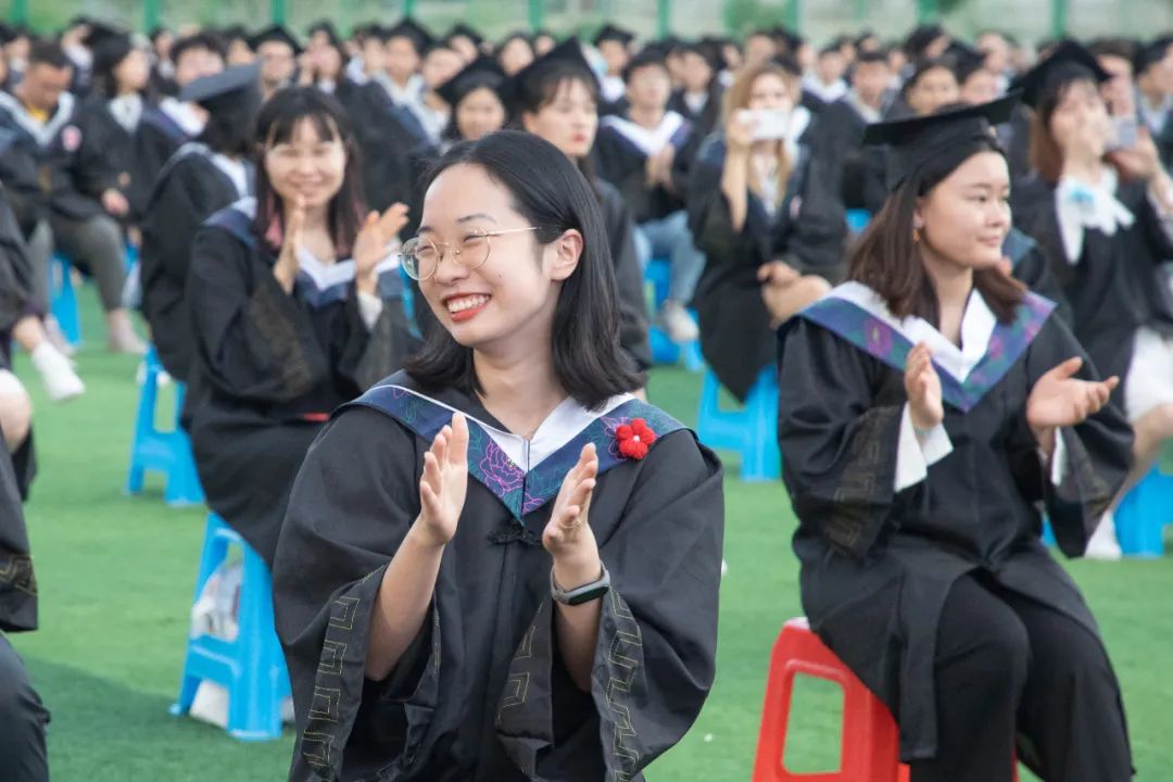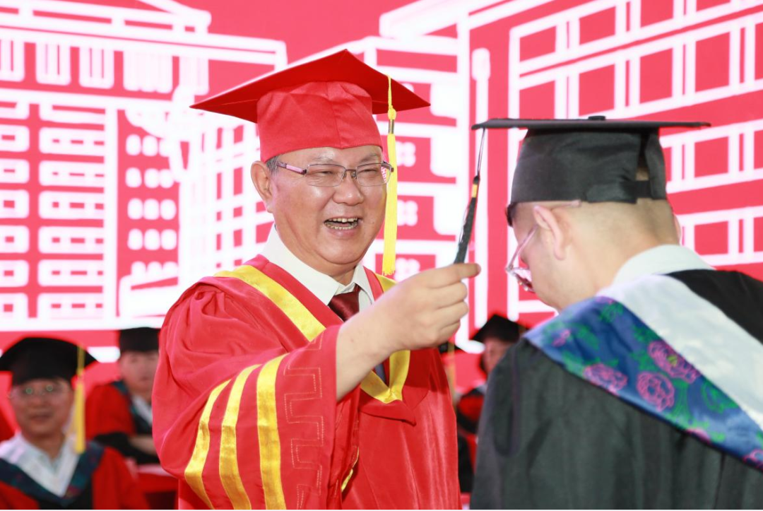 校领导为2022届优秀毕业生颁奖、授予学位并拨穗。