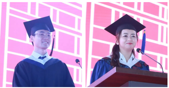 毕业生代表医学工程技术学院生物医学工程2018-2班熊加宝、第三临床医学院2019级麻醉学专业硕士研究生胡尔西达·尼则木丁在发言中深情回忆充满理想与激情、奋斗与拼搏的美好校园生活,表示立志用“敢于有梦,勇于追梦,勤于圆梦”的不懈奋斗,书写无愧于时代、无愧于历史的青春篇章,为母校争光。