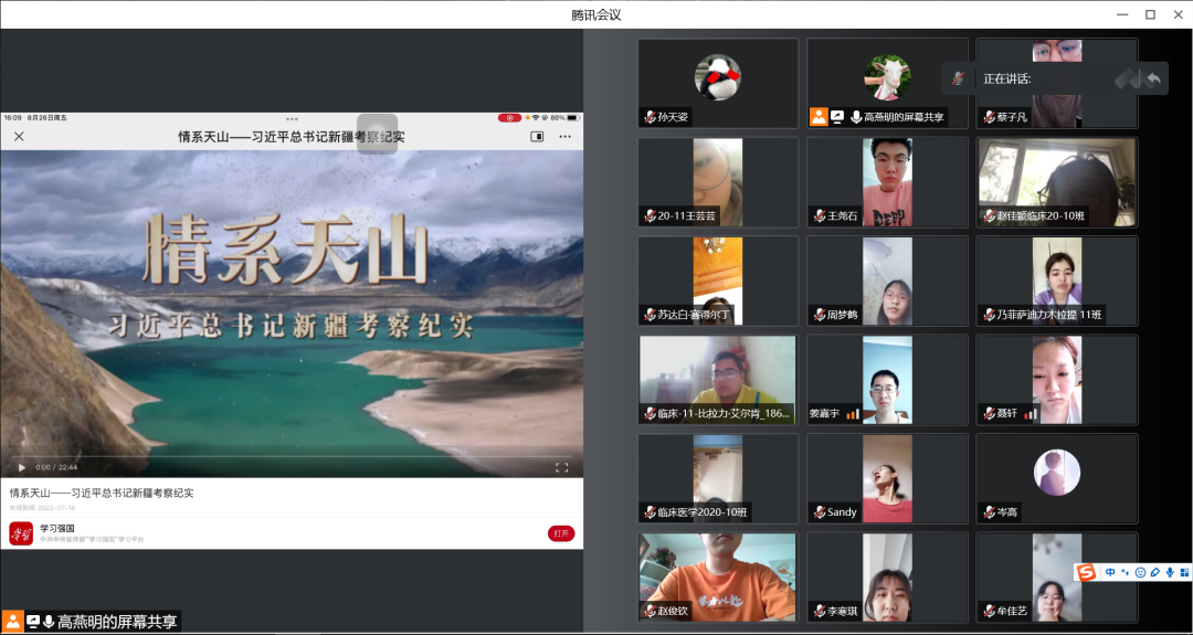 新生见面会上,各学院结合自身特点,开展了内容丰富的入学教育。观看时政纪录片《情系天山——习近平总书记新疆考察纪实》,开展理想信念教育,引导新生进一步铸牢中华民族共同体意识。展示雪莲山校区的建设历程,让新生们了解学校取得的辉煌成绩和今后的奋斗目标,进而认识并爱上新医。开展国家安全教育、防疫安全教育、网络安全教育、防电信诈骗专题教育等,为新生们进一步筑牢安全防线。