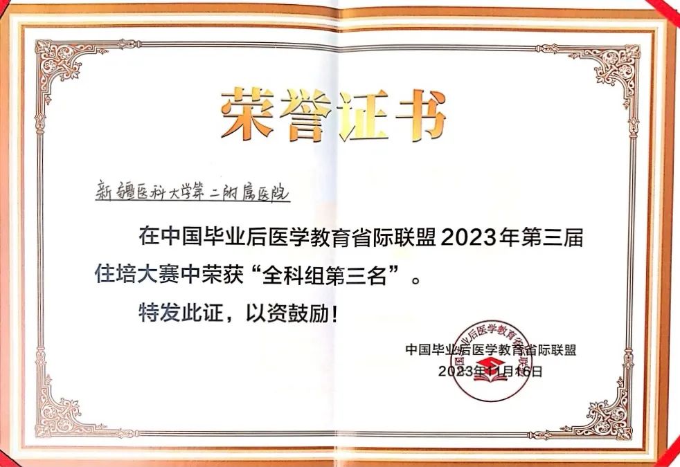 11月18日-11月19日2023年住培大赛(第三届)在海南省海口市顺利举办。Beat365中国唯一官方网站第二附属医院在郭纪锋副院长的精心指导下,全科医学科石雨薇主任带领住培学员刘彤彤、张磊、丁梦琦、地力努尔•艾海提组成的全科代表队最终荣获三等奖。