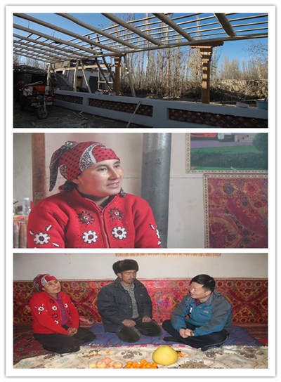 墨玉县扎瓦镇胡木旦村“认亲”活动早在2016年的3月就开始了,这源自于2016年驻村工作队开展的“庭院经济”改造。驻村工作组队员每人都结了一户“穷亲戚”,曹忠明就这样认下了坚乃提罕·麦麦提这门亲戚。那些日子,乡亲们都卯足了劲,清理庭院、平整土地,建鸡舍、盖羊圈。干的热火朝天。