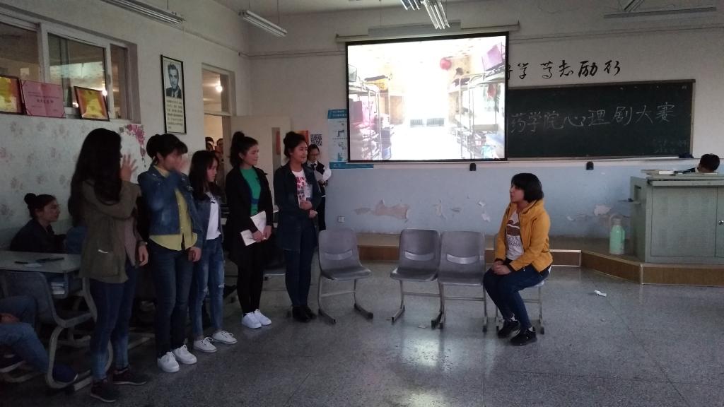 善待心灵,生命会多一份从容和淡定;善待心灵,为理想提供腾飞的舞台。为促进大学生心理健康教育,药学院团委于2017年4月25日晚20:00点,在逸夫楼604教室举行了药学院团委心理剧比赛,此次比赛有四支队伍参赛,药学院团委书记衣不拉音·司马义、团总支书记康莹莹、学生会副主席徐楠、古丽阿扎提到场参加并当评委。