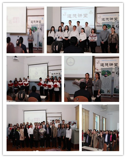 在公共卫生学院教师与学生共同唱响《公民道德歌》的歌声中拉开了“道德讲堂”的帷幕。舞台上表演的老师与学生们着装整齐统一、精神饱满、歌声优美动人,台下的老师与同学也被他们的歌声感染,情不自禁的跟唱,讲堂中每一个人都被《公民道德歌》颂扬的精神感动和振奋。