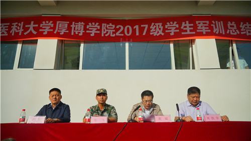 论知识,受到了深刻的国防教育和爱国主义教育,增强了集体主义意识和团队精神,军训取得了圆满成功。希望同学们在日常生活中积极培育和践行社会主义核心价值观,把人生的第一粒扣子扣好、扣正、扣牢,进一步强化国防意识,牢固树立“忘战必危、守土有责”的大国防观念,在关键时刻能够勇于担当;最后,希望同学们在克拉玛依学习和生活的这段大学时光中,秉承“厚德博学,笃志力行”的校训精神,结合克拉玛依“爱国奉献、艰苦创业、民族团结、求真务实、追求卓越”的时代精神,努力成长为可堪大用、能担重任的栋梁之才!在守护人类健康和生命的这一崇高而神圣的使命中奋勇前行、奋发有为!