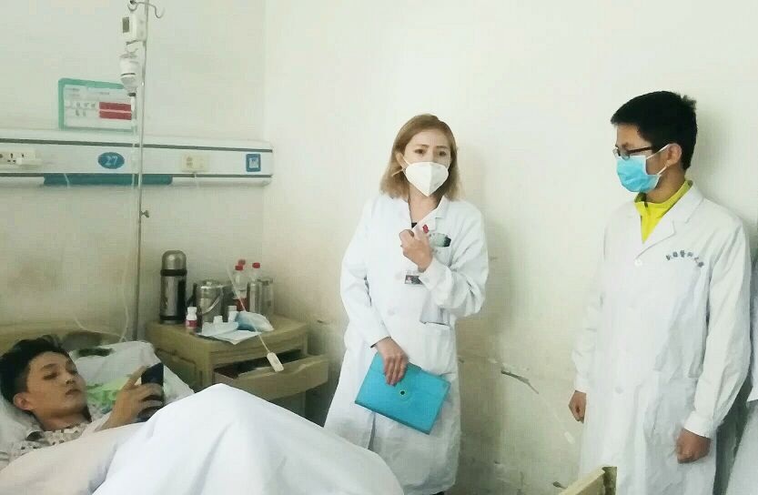 为了让学生们有更加感性的认识,结核一科请两位当天值班的医生如克亚木·阿不都沙拉木副主任医师和李树涛医师,带着学生来到病房,详细地为学生讲解临床的知识。两位老师分别从肺结核的临床表现、影像学诊断、发病机制及传播过程等方面做了详细解读。一位20岁出头的非传染性结核病人因长期生活不规律导致感染结核杆菌,但又因拖延治疗,差点失去了生命。他在讲述自己得病和治疗的过程中,由衷地感谢医生们用尽全力将他从死亡线上拉回来。