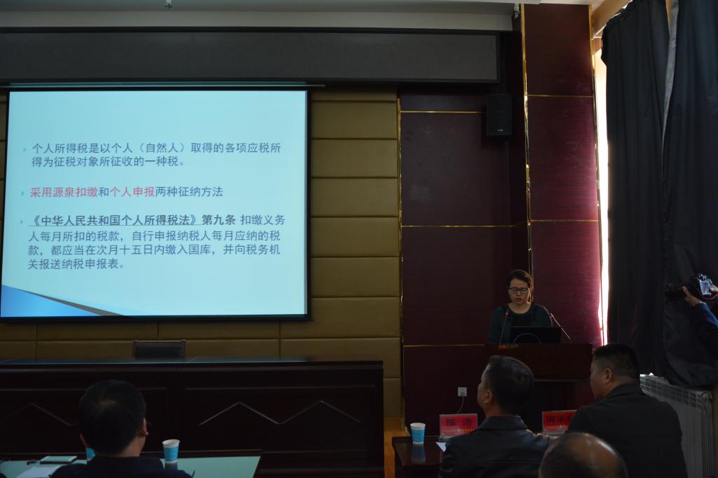 此次讲座,首先由高新区(新市区)地税局法规科王薇同志讲授,她针对个人所得税税种的解读和征缴进行了深入浅出、循序渐进的详解,特别是在收入减免征税方面,让大家豁然开朗。