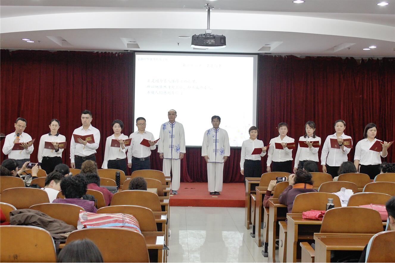 在“诵经典”环节,来自图书馆、公共体育部的12位教职工共同诵读了《道德经》的十二章节,在太极拳的韵律中,在抑扬顿挫的诵读间让大家共同感受到了中华传统文化博大精深的感召力量。随后,来自离退休人员服务管理中心的老前辈们为大家献上歌曲《春雨》,悠扬的歌声如春风化雨般润泽了在场的每一位师生,老前辈们忠诚奉献的敬业精神在我们每个人的心中生根发芽。