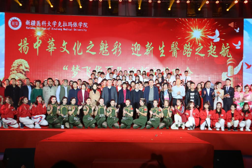 晚会开始前,克拉玛依学院赴墨玉县深度扶贫教师、支教教师、内派教师及历届毕业生,通过短片对2018级新生送上了亲切问候。晚会围绕“扬中国文化之魅彩,迎新生医路之起航”的主题,分为“尚古韵、看月满花开时”“思自我、养我中国之风”“展未来、启新医荣光路”三个部分,通过丰富多彩的节目形式,展现了中华文化的瑰丽,并融合现代元素,结合时代流行乐器,将古今文化交织一体,造就了一场穿越时空的文化融合对唱,以此引导全院师生对中华文化的大力弘扬及优良传承。