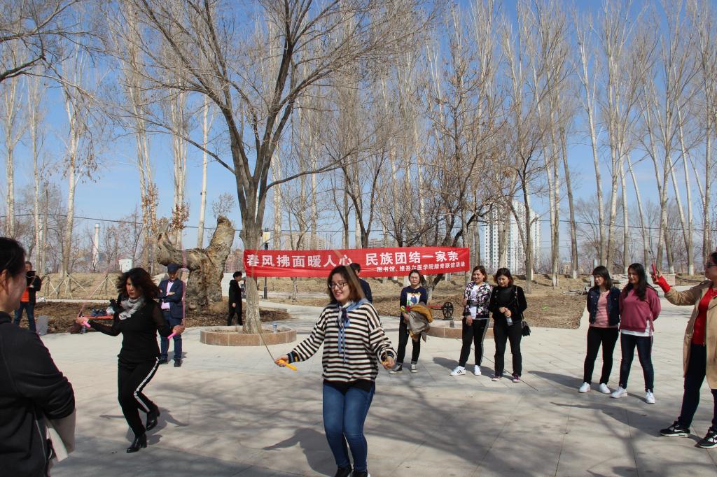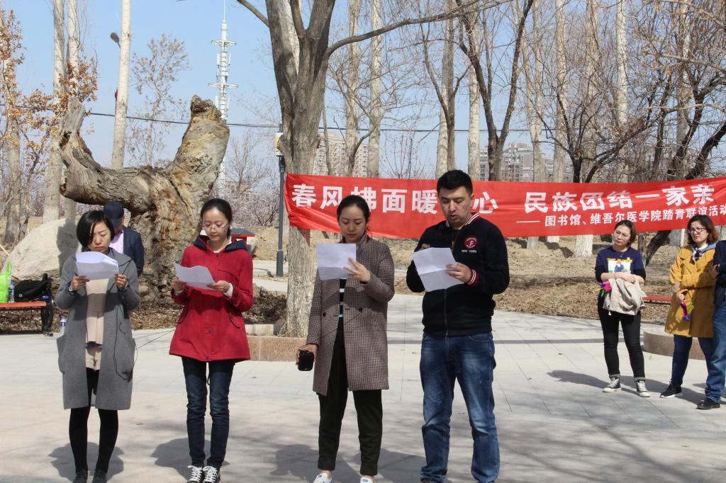 4月10日下午,维吾尔医学院与大学图书馆联合在鲤鱼山公园举办了“春风拂面暖人心·民族团结一家亲”春日踏青活动。