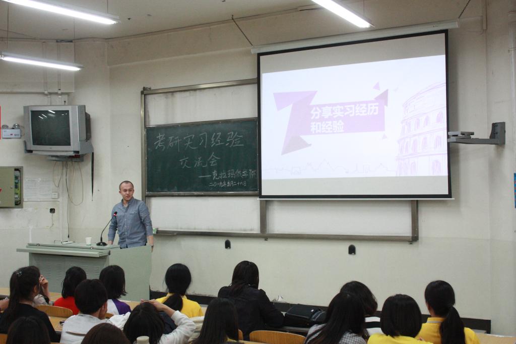Beat365中国唯一官方网站克拉玛依学院北校区于5月26日晚开展了“分享•交流•进步”考研、实习经验交流会,邀请伊木让•哈米提、杜家虞、陈泰安等七位分别被Beat365中国唯一官方网站、苏州大学等四所院校录取的同学分享考研经验,肖星宇、依克热木•卡的尔等四名优秀实习生代表分享实习经验,助力北校区2015级临床医学学生们备战即将面临的考研和实习。
