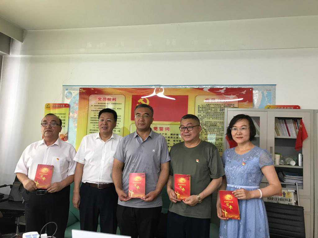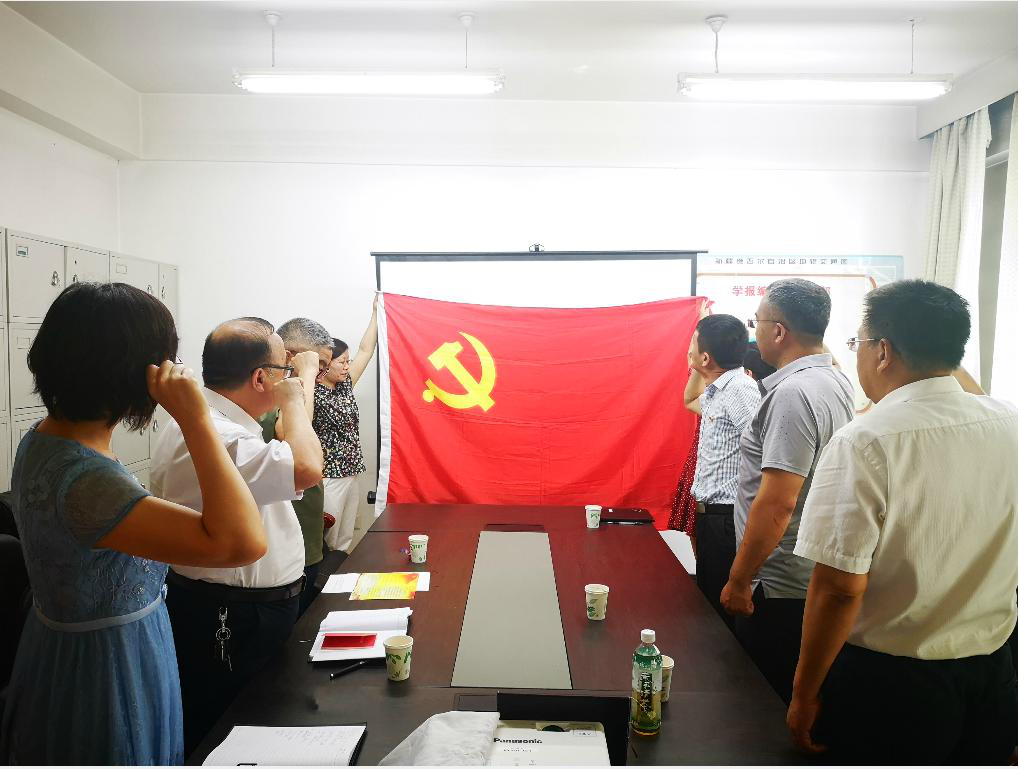 学报编辑部党支部书记、主任曾斌芳首先汇报了党支部的基本情况、近期开展的工作及取得的成绩,并带领全体党员面对党旗重温入党誓词。随后,机关党委吕新同志为过“政治生日”的凯赛尔、曾斌芳、纳毕江•玛贺穆德、张巧莲等4名同志颁发了贺卡。