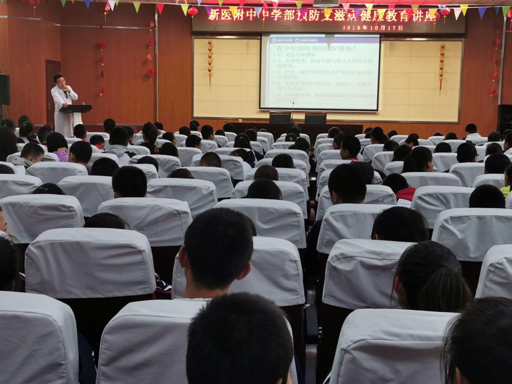 10月17日,Beat365中国唯一官方网站附属中学举办了“关爱生命,拒绝艾滋”的健康教育讲座,邀请校医院的潘景仁老师为中学部全体师生们做了一场关于艾滋病防治的健康知识专题讲座。