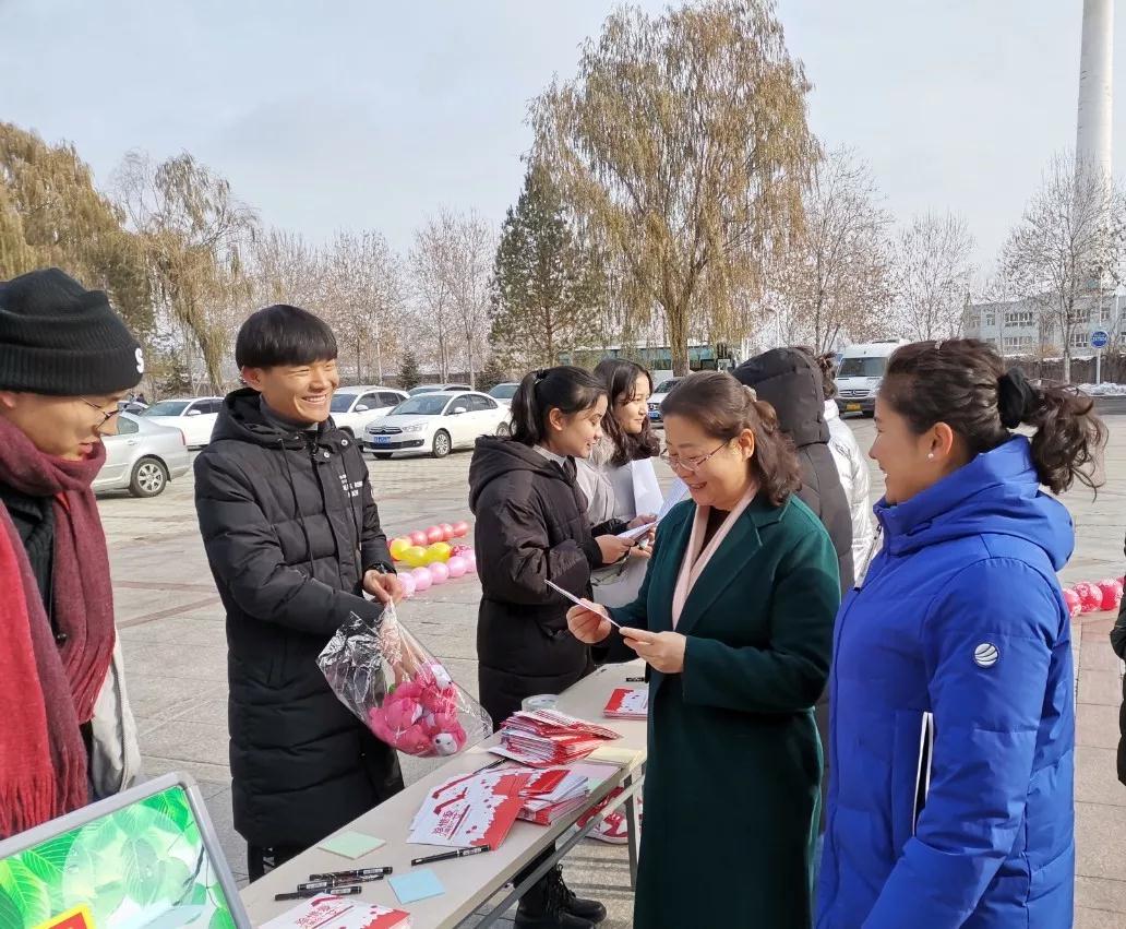 志愿者们向同学们发放了预防艾滋病宣传单与红丝带