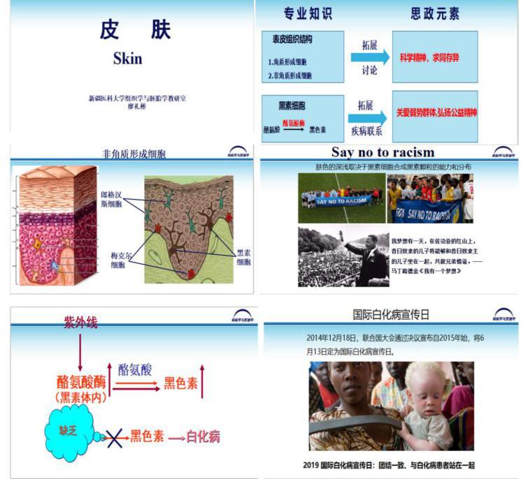 基础医学院通过加强专业教师的培训,让教师参加课程思政教学设计相关的国内相关培训,进一步提高教学能力。在不同层面组织参与课程思政推进会、课程思政示范观摩课、课程思政说课竞赛等,全面提升专业教师课程思政意识和能力。通过实施基础医学思政-专业个性化教学方案,每年可惠及19个学院及所涉及的包括临床医学、中医学、麻醉学、护理学、维医学等十几个专业的153个班级,几乎涵盖了全校近90%的本专科学生,为全员、全程、全课程育人提供切实可行的方案。