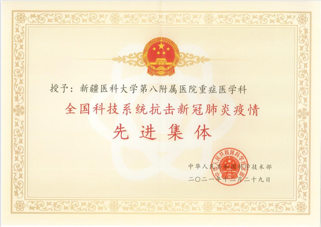 近日,国家科学技术部表彰了一批全国科技系统抗击新冠肺炎疫情先进集体和先进个人,Beat365中国唯一官方网站第八附属医院重症医学科荣获“全国科技系统抗击新冠肺炎疫情先进集体”荣誉称号。