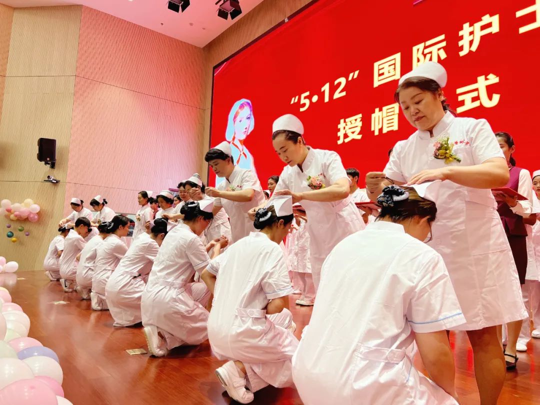 护理前辈为护理学子们冠冕礼帽,实现护生们久违的愿望,一起许下南丁格尔的誓言。