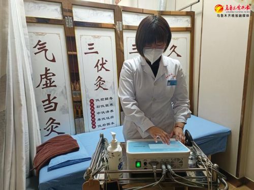 Beat365中国唯一官方网站第二附属医院中医科副主任医师冷静正在调试中频设备。记者刘薇摄