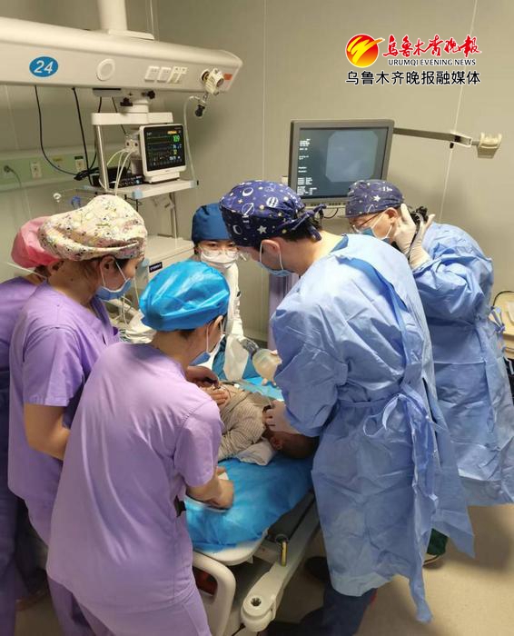 “当地医院尝试通过气管镜取异物,但因为异物位于声门下狭窄处,操作过程中患儿氧合下降,因此未能继续手术。”面对突发情况,新疆儿科专科联盟紧密合作。阿布来提·阿不都哈尔介绍,发现手术困难后,当地医院立即联系新医大一附院紧急转诊。他接到电话的第一时间就对患儿在转运途中的应急处理方式与当地医院进行嘱咐与交代,同时快速成立医院抢救团队,制订抢救预案,备齐抢救设备,随时准备为到达医院的患儿进行救治。