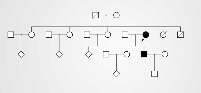 2023年7月,73岁女患者因蛋白尿、肌酐升高10天就诊入住新医大一附院肾病中心,经询问病史与家族史,患者妹妹跟弟弟均因肾脏疾病去世,儿子有临床蛋白尿,考虑遗传性疾病导致肾损害不除外。2023年11月,在中国红十字基金会项目免费资助下,患者行干血片法检测提示GLA基因7号外显子突变,进一步肾脏穿刺病理电镜显示“噬锇髓样小体”,据此患者与儿子完善了法布雷病免费基因检测。基因检测结果提示GLA基因7号外显子突变:C蛋白在DNA水平上第1082位由碱基G突变为C,P蛋白编码361号甘氨酸突变丙氨酸。母子2人基因突变位点相同,目前在进一步为患者其他近亲属完善家系筛查。