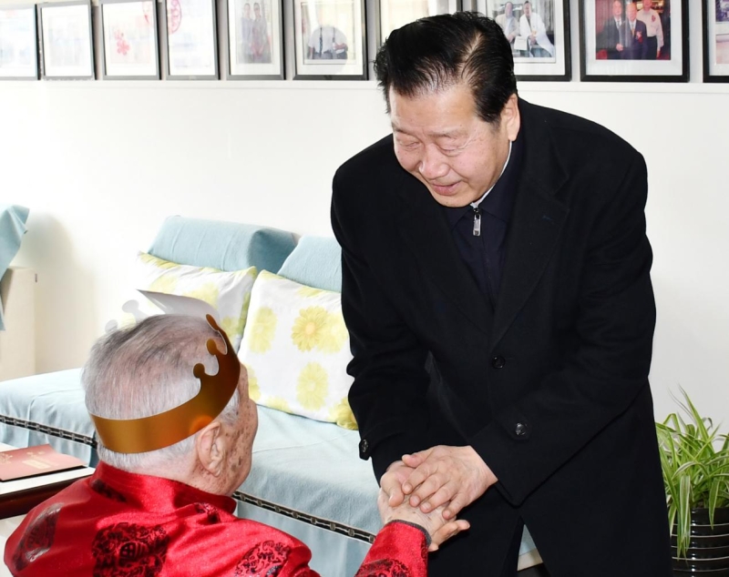 赵天杰紧紧握住田老的手,同他亲切交谈并致以诚挚问候,“田教授,我们代表学校专程过来看望您,祝您生日快乐,健康长寿!您过去所做的贡献,医院忘不了,大学也忘不了!您的健康长寿是我们大家的最大心愿!”田老激动地频频点头表示感谢。并向家人仔细询问了田教授的日常起居及身体情况,同时叮嘱医院相关部门要做好对老人的日常关心工作。