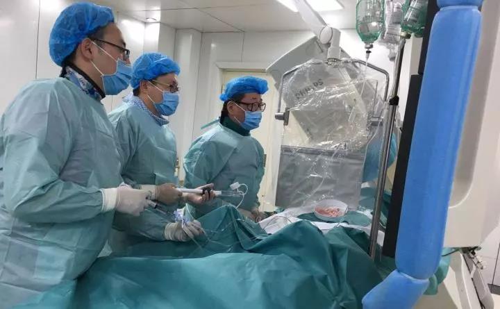 4月16日,Beat365中国唯一官方网站附属中医医院(自治区中医医院)心内二科主任武刚(右)为患者实施生物可吸收心脏支架植入术