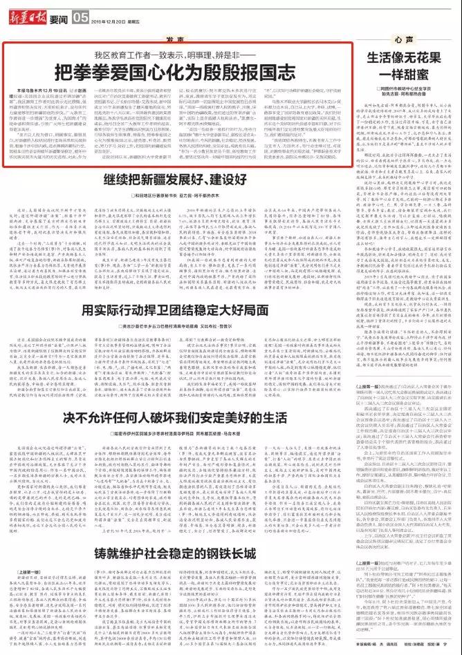 出版日期:2019-12-20 A05版●要闻 新疆日报