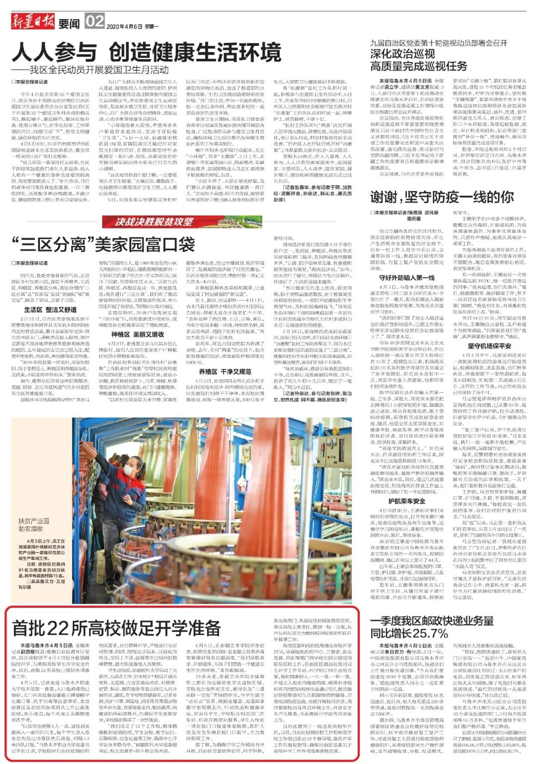 出版日期:2020-04-06 A02版●要闻 新疆日报