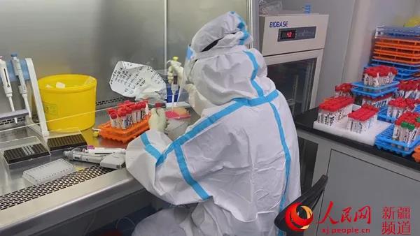 医护人员争分夺秒开展核酸检测工作。